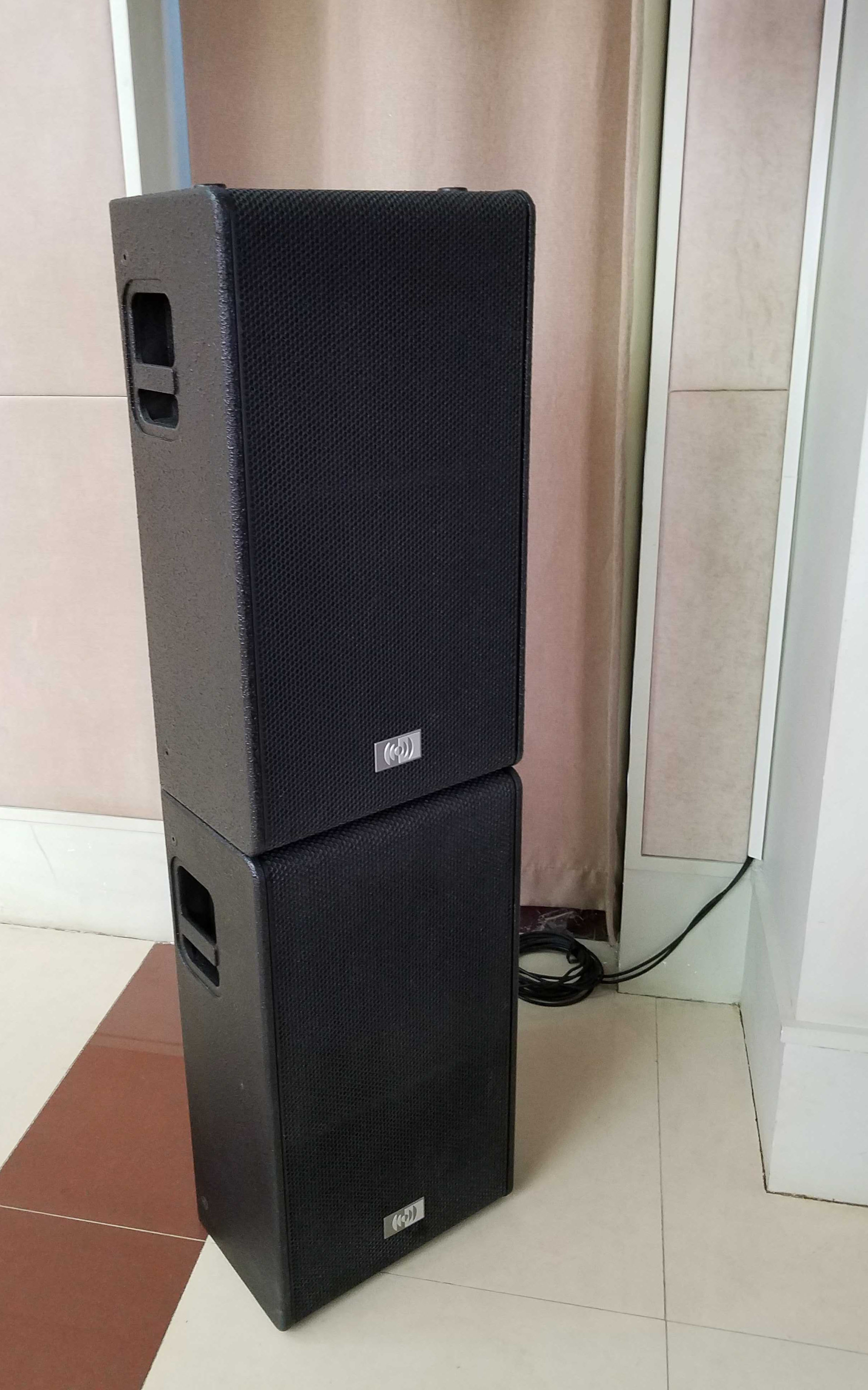 主扩声系统采用的是PRS-TW15,TW15是两单元两分频全频音箱。由一只15寸Cloth edge低频单元和一只44芯钛膜高音压缩驱动器组成。大动态,高灵敏度,中、高音通透清晰,低频力度感好。箱体本身的抗拉力达到4500N。音箱的吊装方式采用专用的吊装形式单点承受拉力3000N,达到高于7倍的吊装安全系数。音箱的面网采用的材料是Q235,表面采用喷粉工艺,使面网不仅有很高的强度,且有很好的抗盐雾能力,其抗盐雾的能力(5%的氢氧化钠)达到96小时,在实际运用中可以达到在无损的情况下,可以连续使用5年不生锈;音采用扬声器PRS-TW18B。