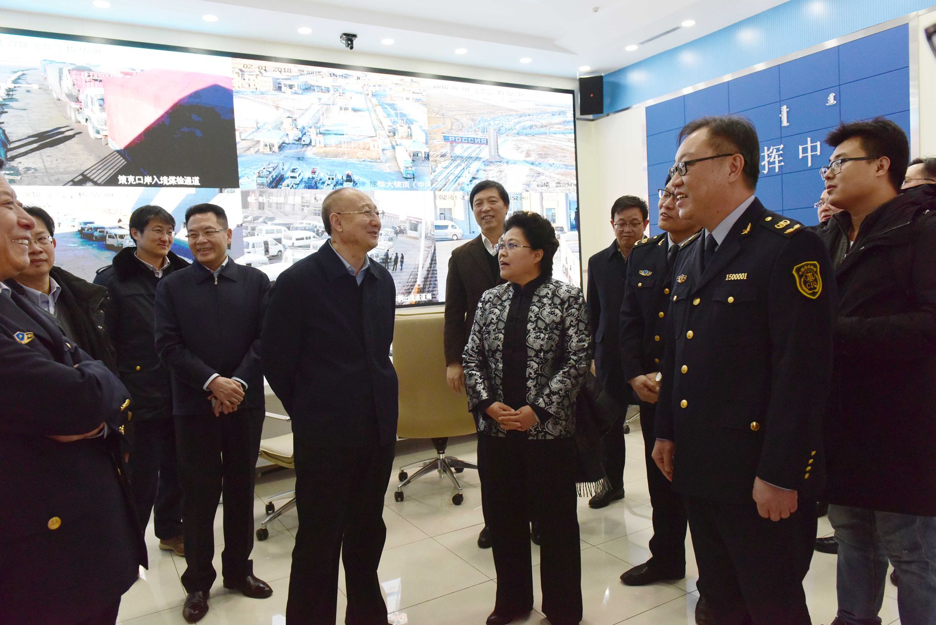 质量监督检验检疫总局局长、党组书记支树平在内蒙古调研检验检疫检工作时,由内蒙古检验检疫局局长、党组书记詹少彤带领下参观了刚刚改造的音视频系统布控指挥。