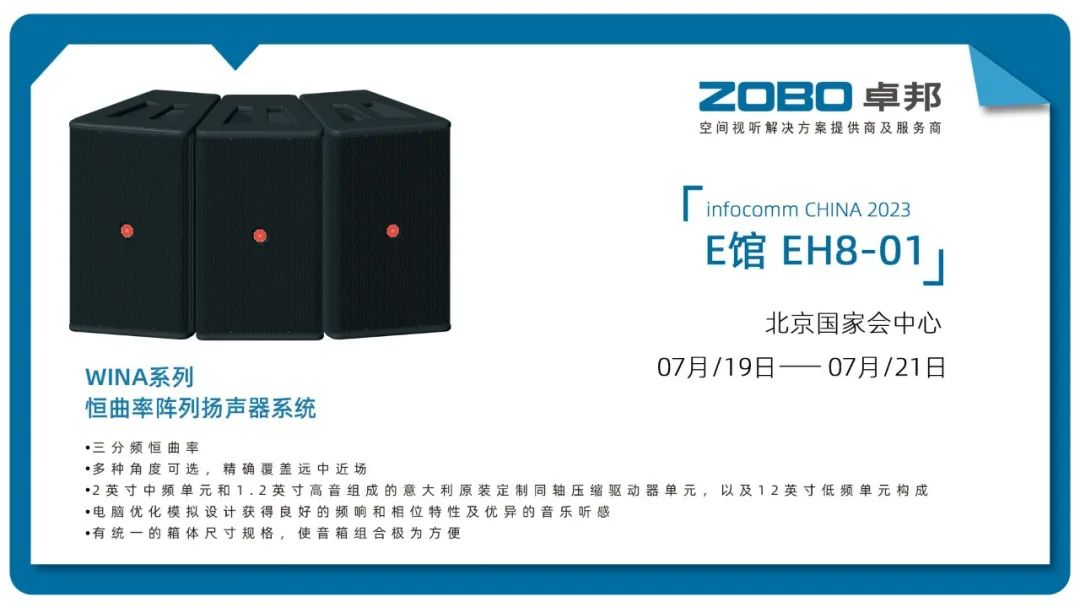 7月19日是展会第一天,ZOBO麻豆影院91性欲展位(E馆EH8-01)异常热闹,人潮络绎不绝,吸引众多观众吸引观众前来围观。ZOBO麻豆影院91性欲作为业内的空间视听解决方案提供商及服务商,携众多产品亮相本次展会,为大家展示多款革新产品和完善的空间视听解决方案,吸引了众多观展者的目光。